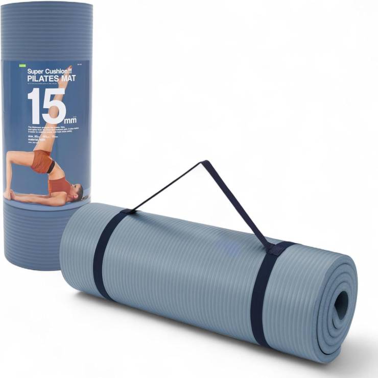 ピラティスマットの厚さはピラティスマット10mmライトベージュとピラティスマット15mmブルーグレーの2種類!