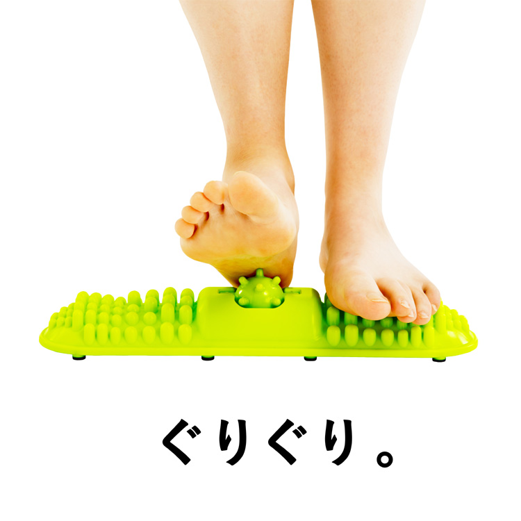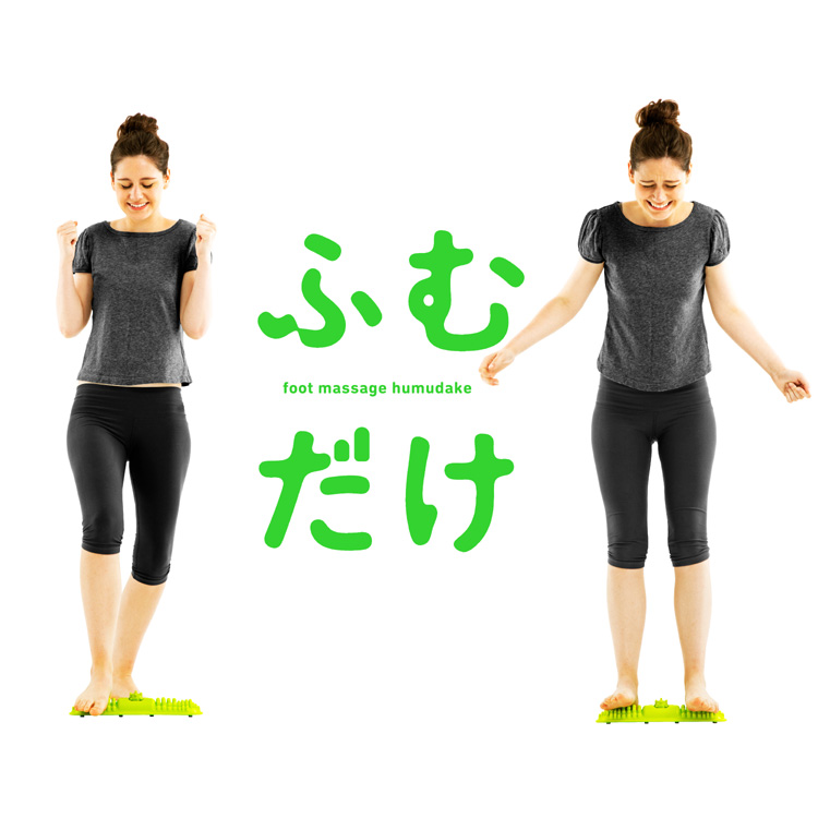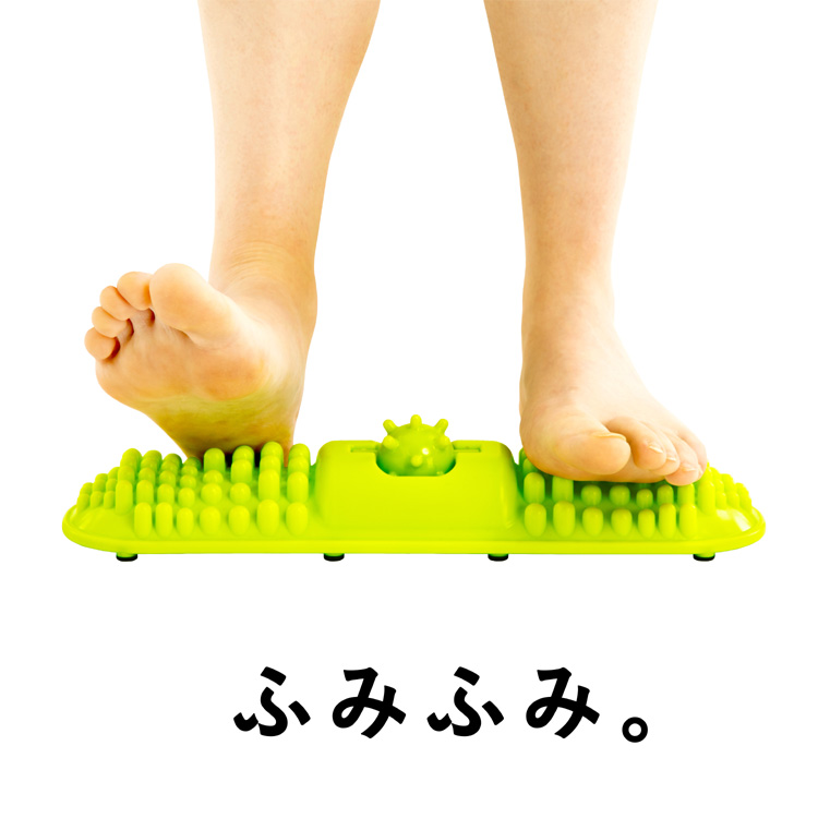 ●ふむだけに乗って足踏みをすると、丸いイボイボが程良くツボを刺激!
