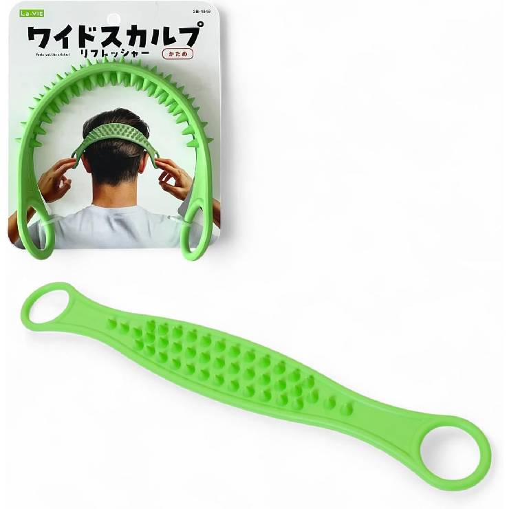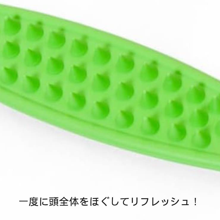 La-VIE(ラヴィ)の「ワイドスカルプ かためグリーン」は、頭皮全体を心地よく刺激できるロングタイプの頭皮マッサージブラシです。
