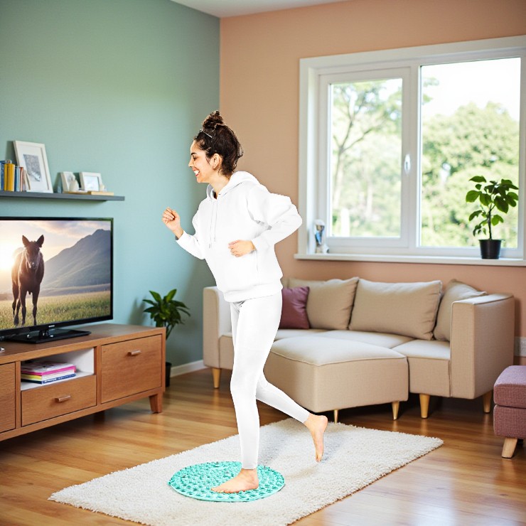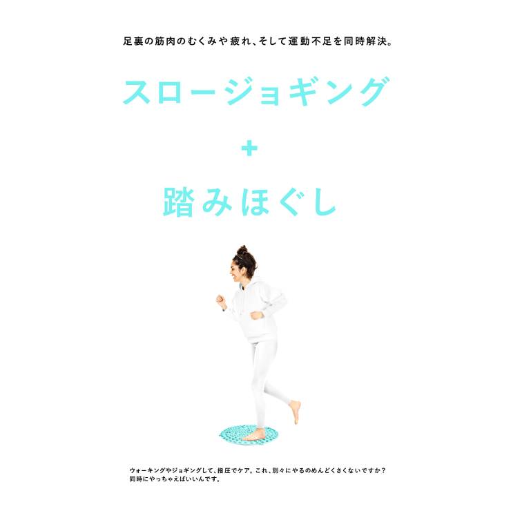 ○立ち仕事やデスクワークでの座りっぱなしの方、むくみが気になる方に。足裏を刺激しながらジョギングやウォーキングをすることで、血行の促進を促します。マットの突起が足の裏をツボ押し。疲れた足をリフレッシュ。