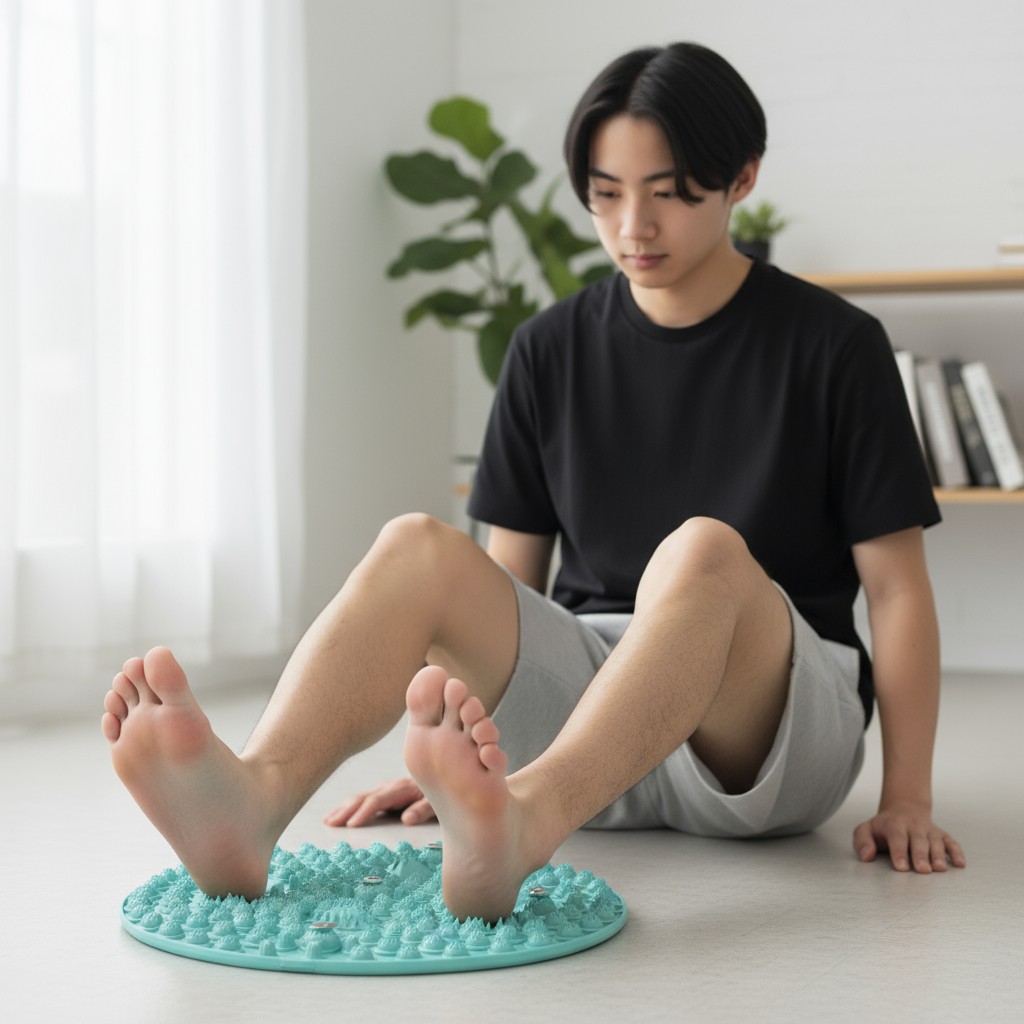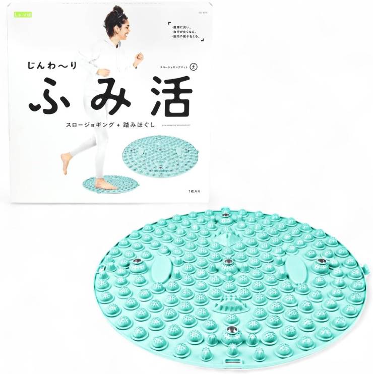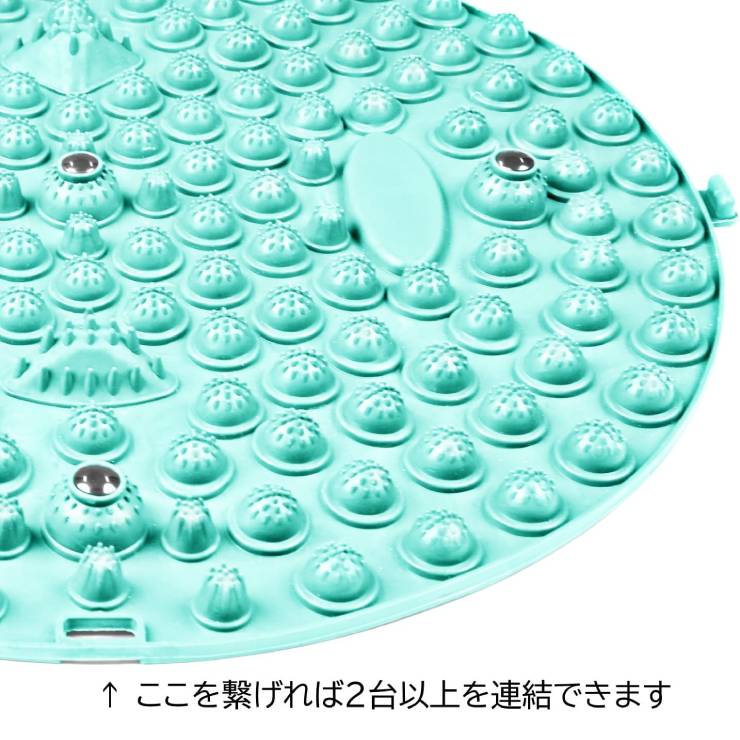○ウォーキングやジョギングと、指圧でケア。足の疲れと運動不足を同時に解消できる便利な円形の足つぼマットです。