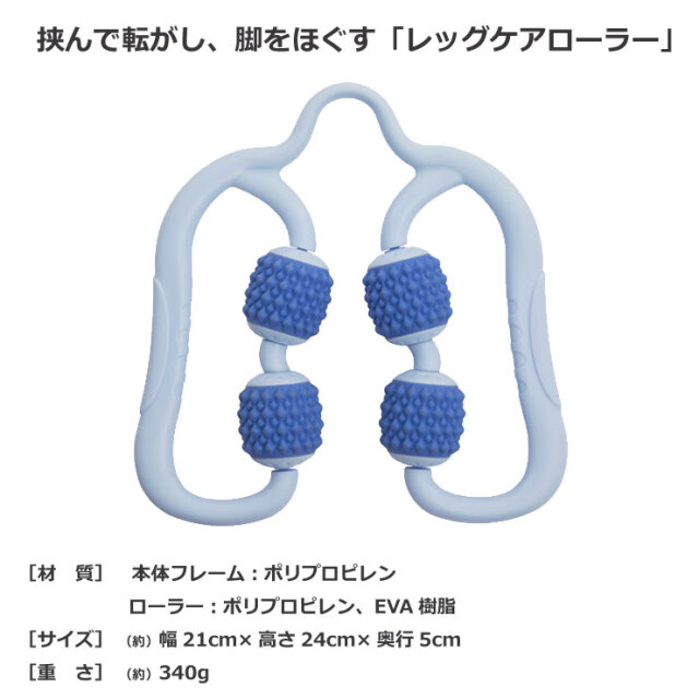 挟んで転がし、脚をほぐす「レッグケアローラー」です。