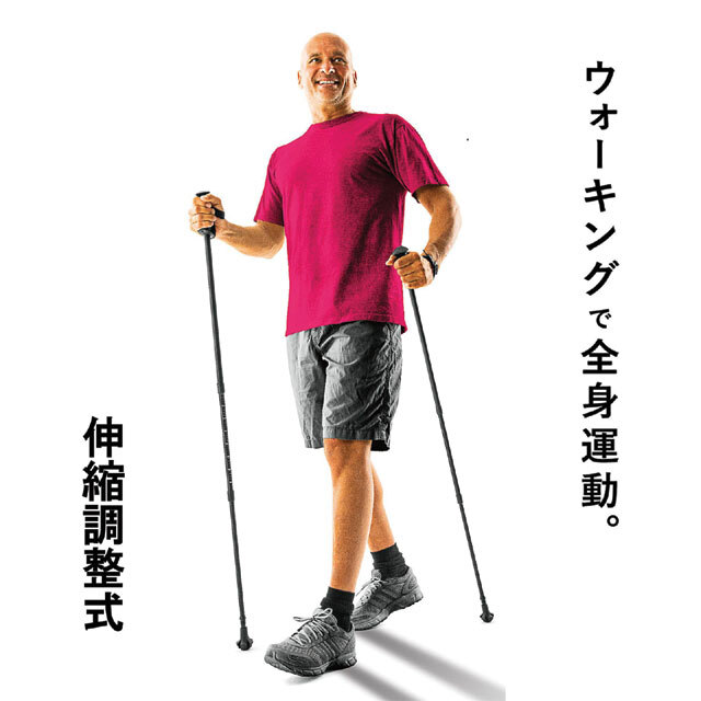 ノルディックポールで、ウォーキングをさらに効果的に!伸縮調整式のノルディックウォーキングポールです。